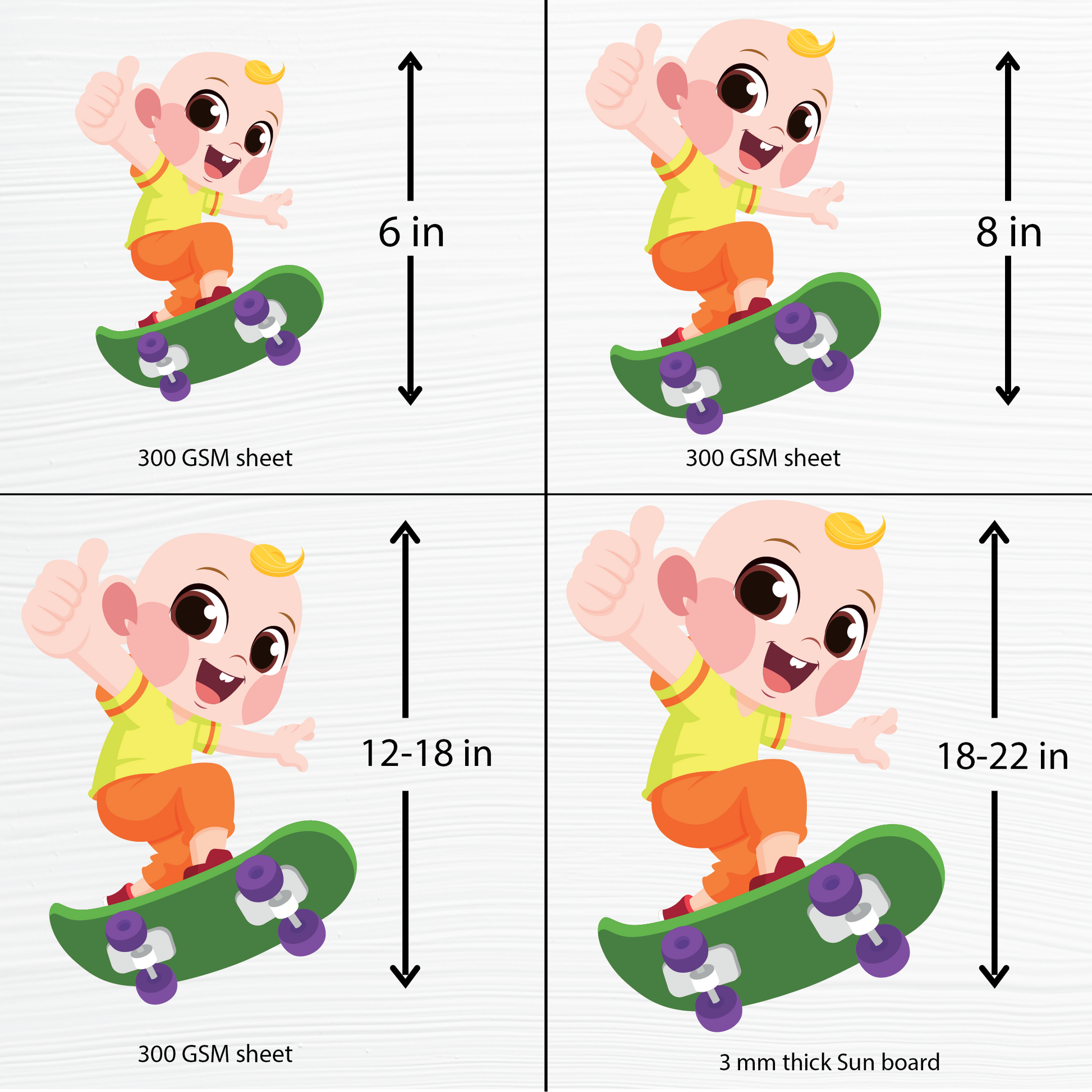 All of the above cutouts printed on 300 GSM sheet can be stuck to wall or balloon arch with help of adhesive.