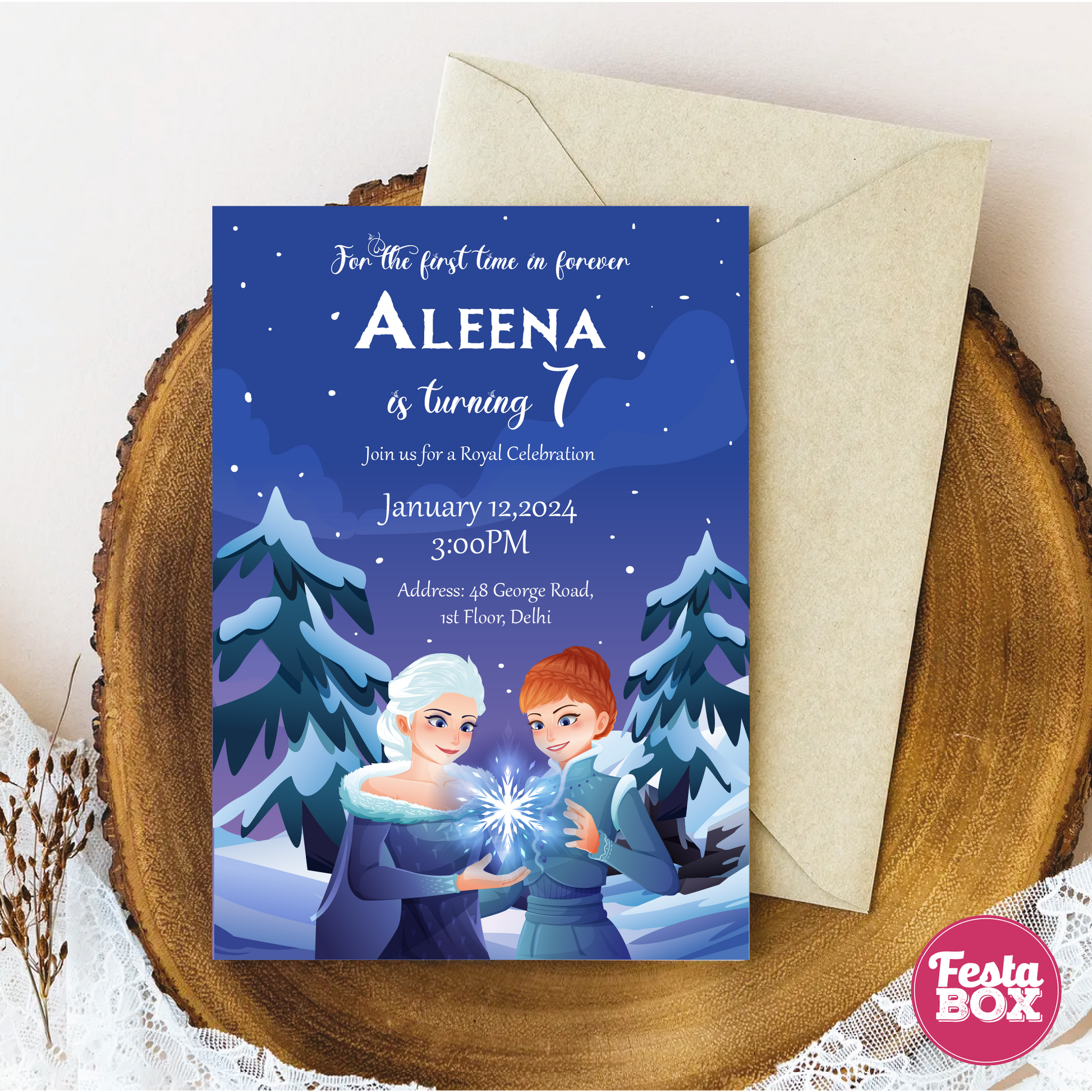 Celebrate in the magical world of Frozen with our Festabox themed invitations! Designed for girls' birthday parties, this set of 6 or 12 invitations is valid for not only their first birthday but for years to come. Get ready for a fun-filled event that will spark joy and imagination!