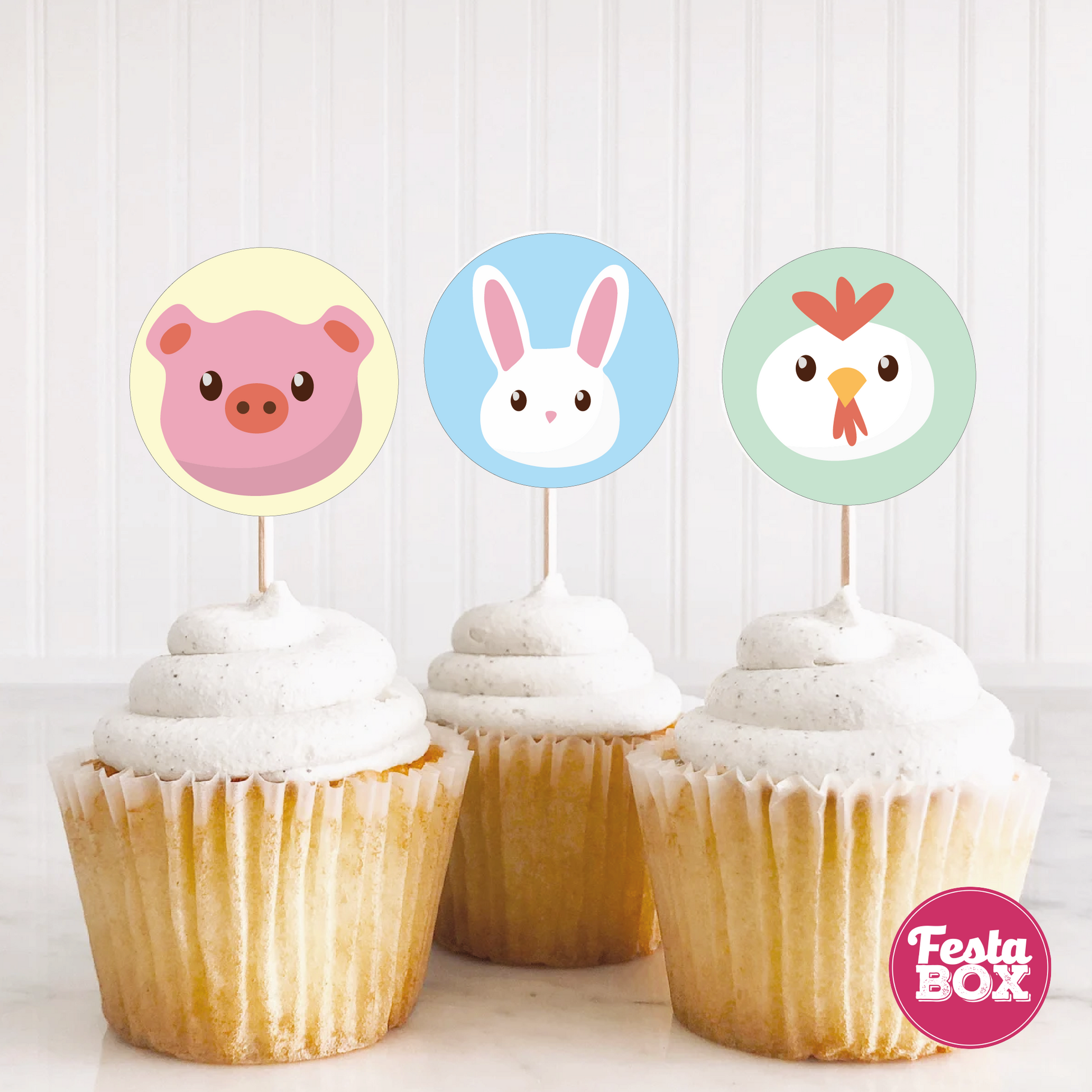 Cupcake Topper for Birthday Party - Farm Animals Theme - Assorted (Option 1)