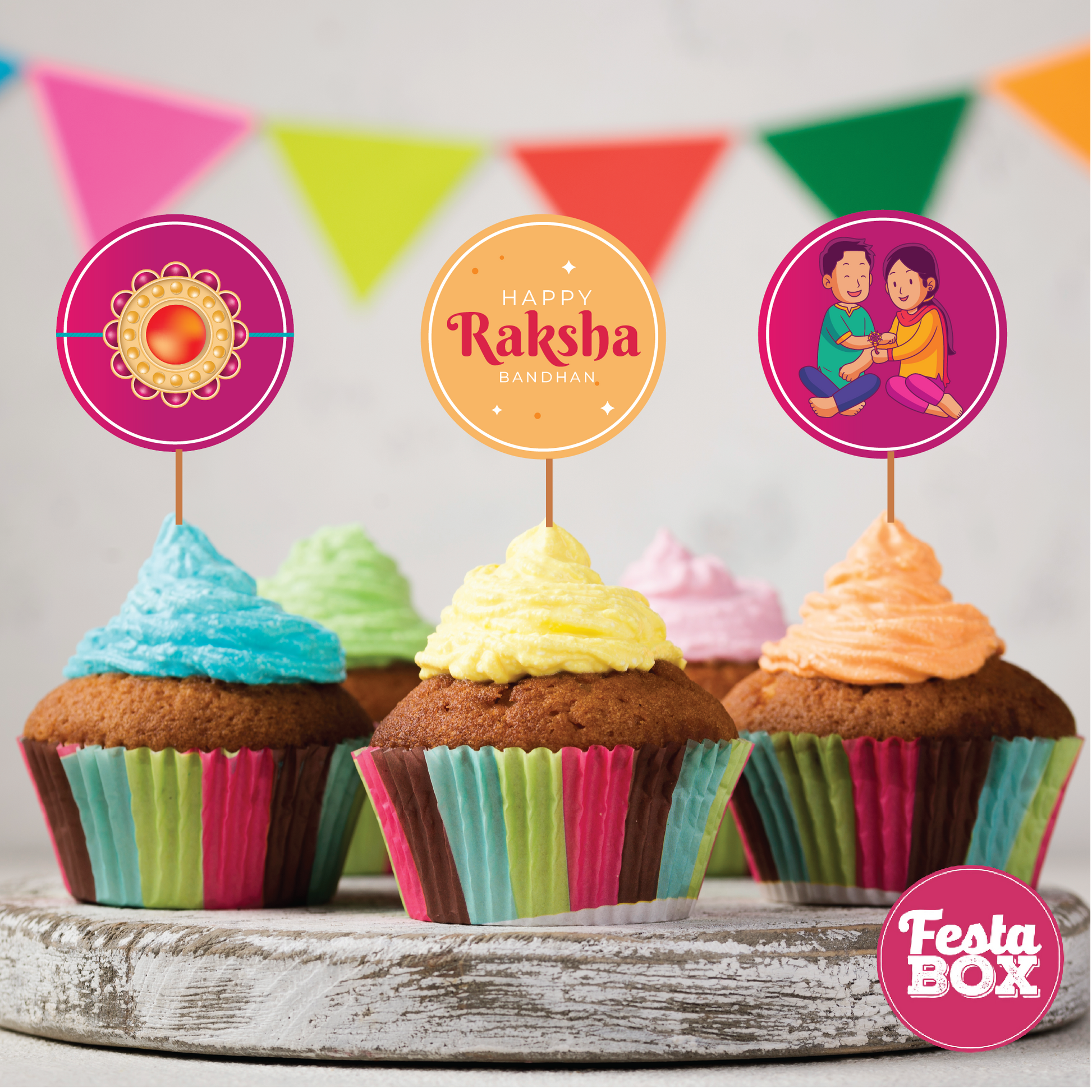 Cupcake Topper for Rakhi celebration - Rakhi Theme (Set of 6) - Assorted