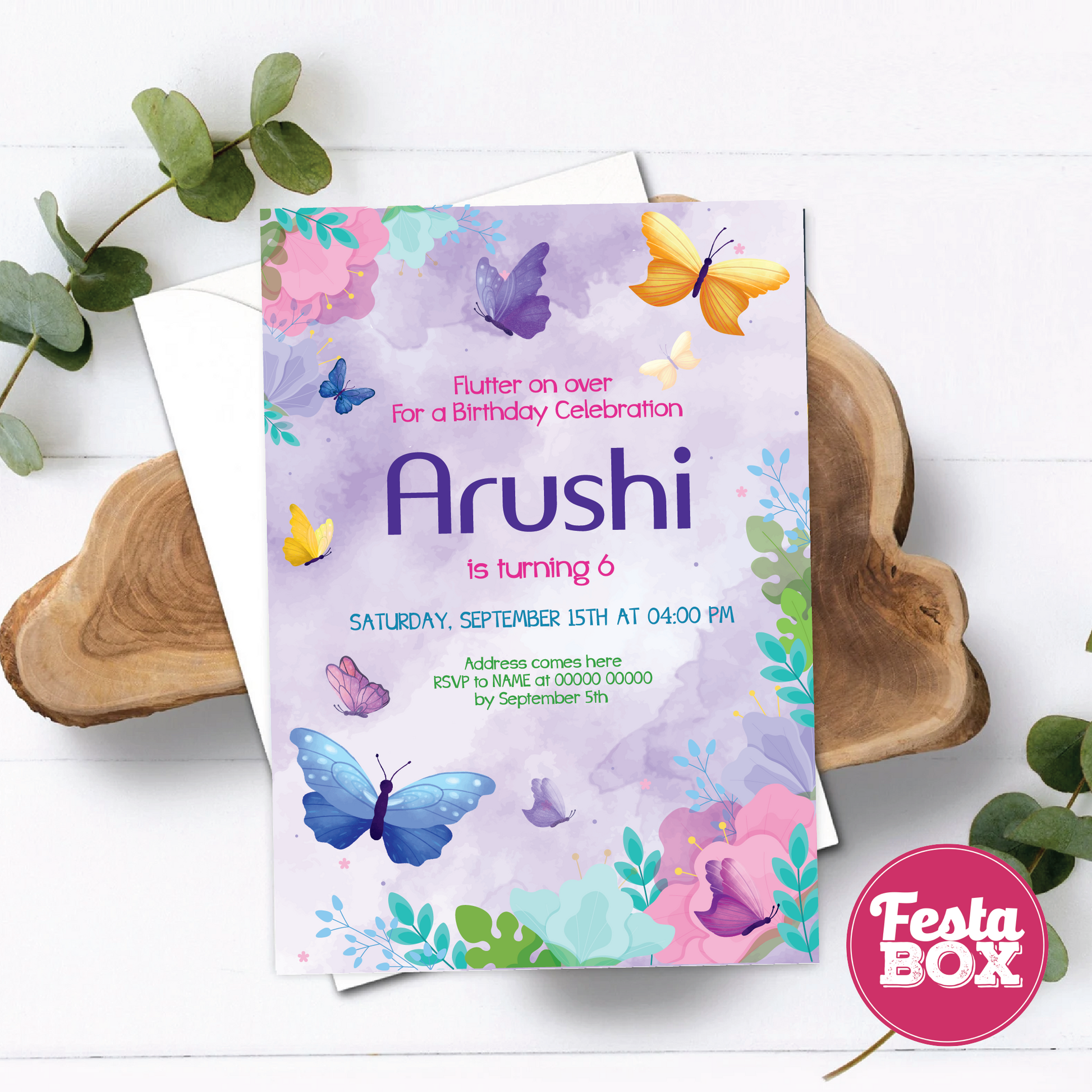 Celebrate your little girl’s big day with the stunning Butterfly Theme e-Invite for Birthday Party by Festabox! This digital invitation, perfect for a first birthday party or any milestone in later years, features a charming butterfly design that’s tailor-made for girls’ birthday parties. Bursting with color and whimsy, this butterfly-themed birthday party e-invite sets the stage for a magical celebration. Festabox ensures quick delivery—your personalized e-invite will be emailed to you within 48 hours of placing your order. Make her day extra special with this hassle-free, enchanting option—order now and let the festivities soar!
