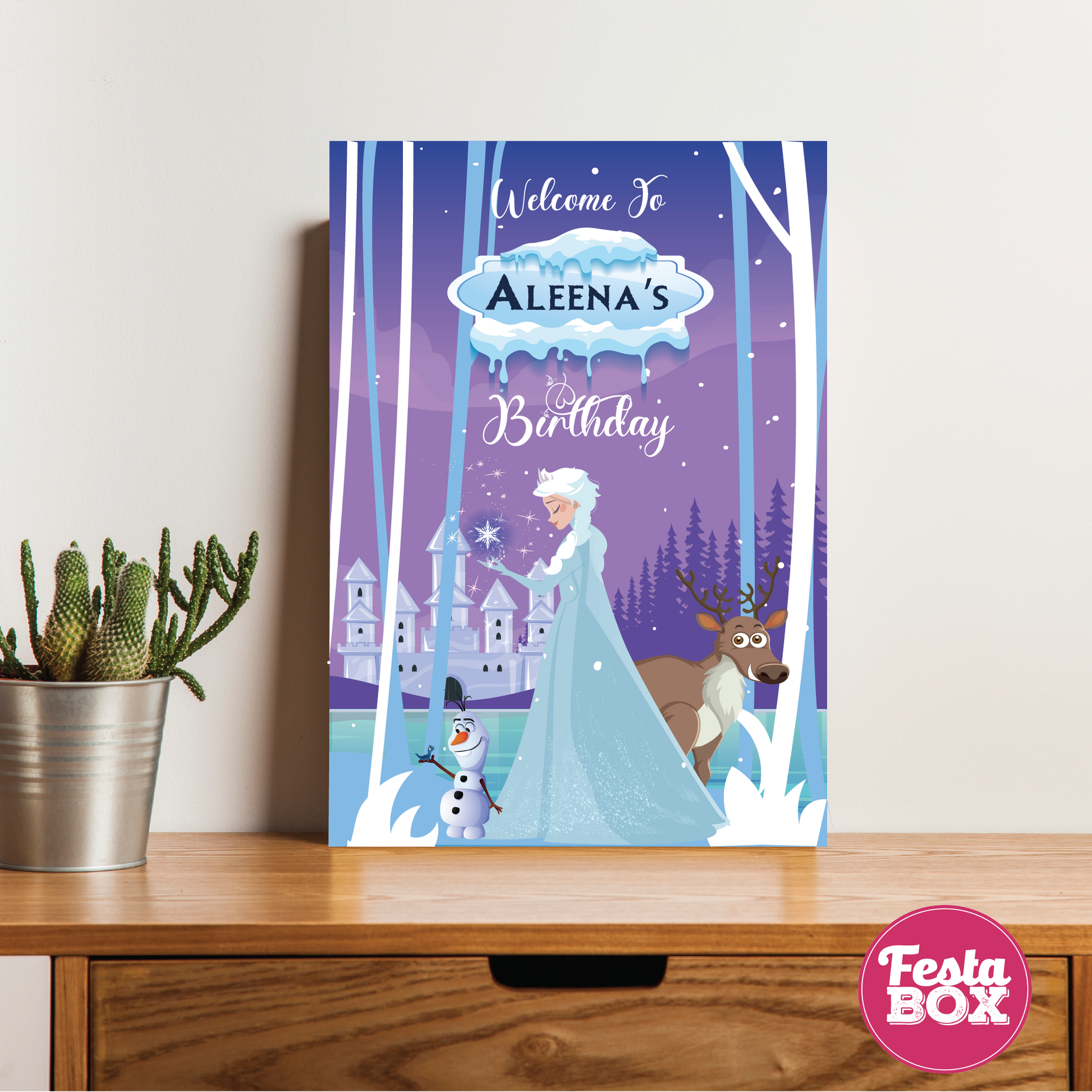 Welcome guests in style with our Frozen-themed Welcome Sign! Perfect for girls' birthdays, this charming sign by Festabox sets the tone for a magical celebration. Suitable for first birthdays and beyond, it's the perfect addition to your party decorations. Get ready for an enchanting party with our Welcome Sign!