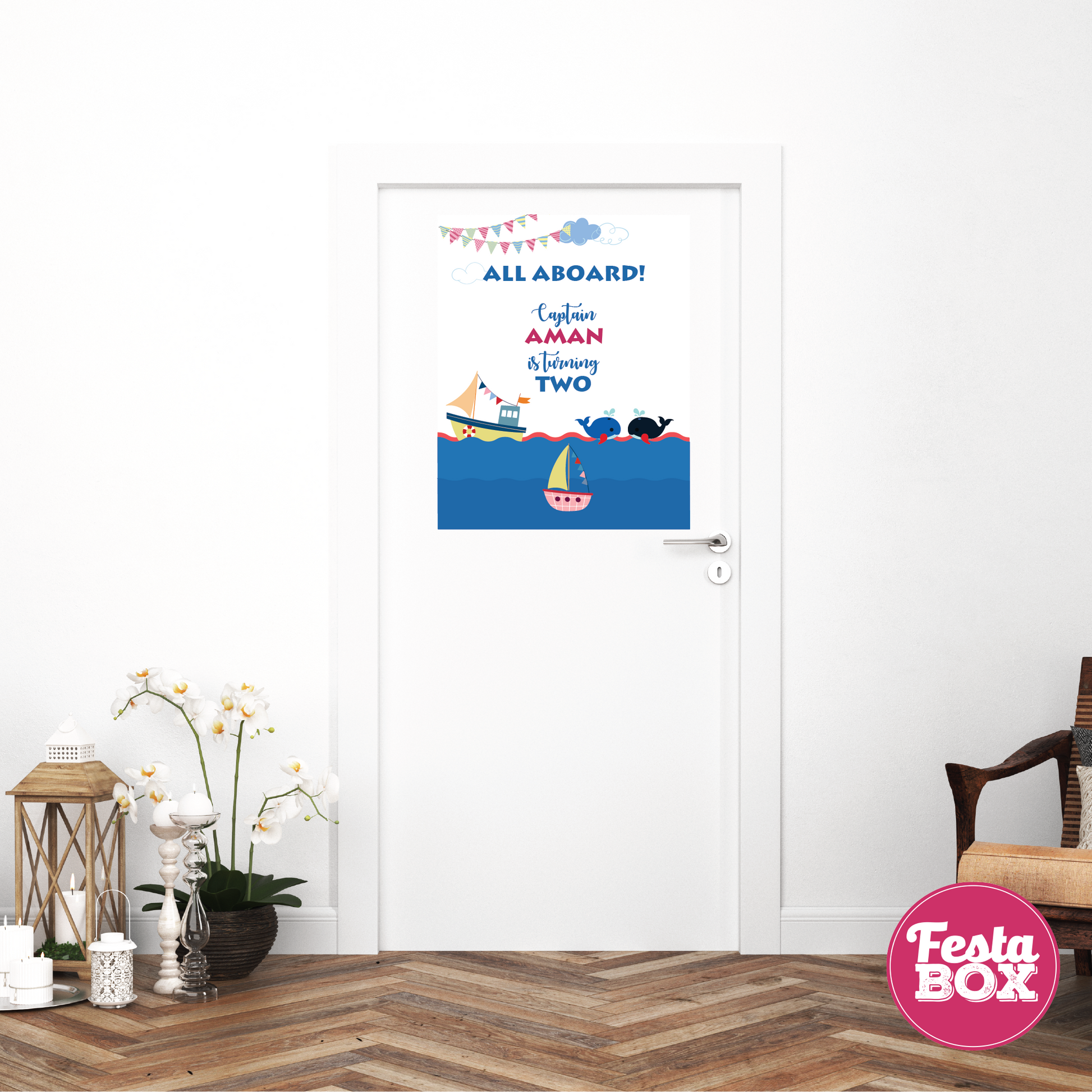 Create a festive atmosphere at your next birthday party with our Welcome Sign! Crafted by Festabox with a charming nautical theme, this poster for the wall or door will be a perfect addition to your decorations. Welcome your guests with style and make them feel like they're part of the party!