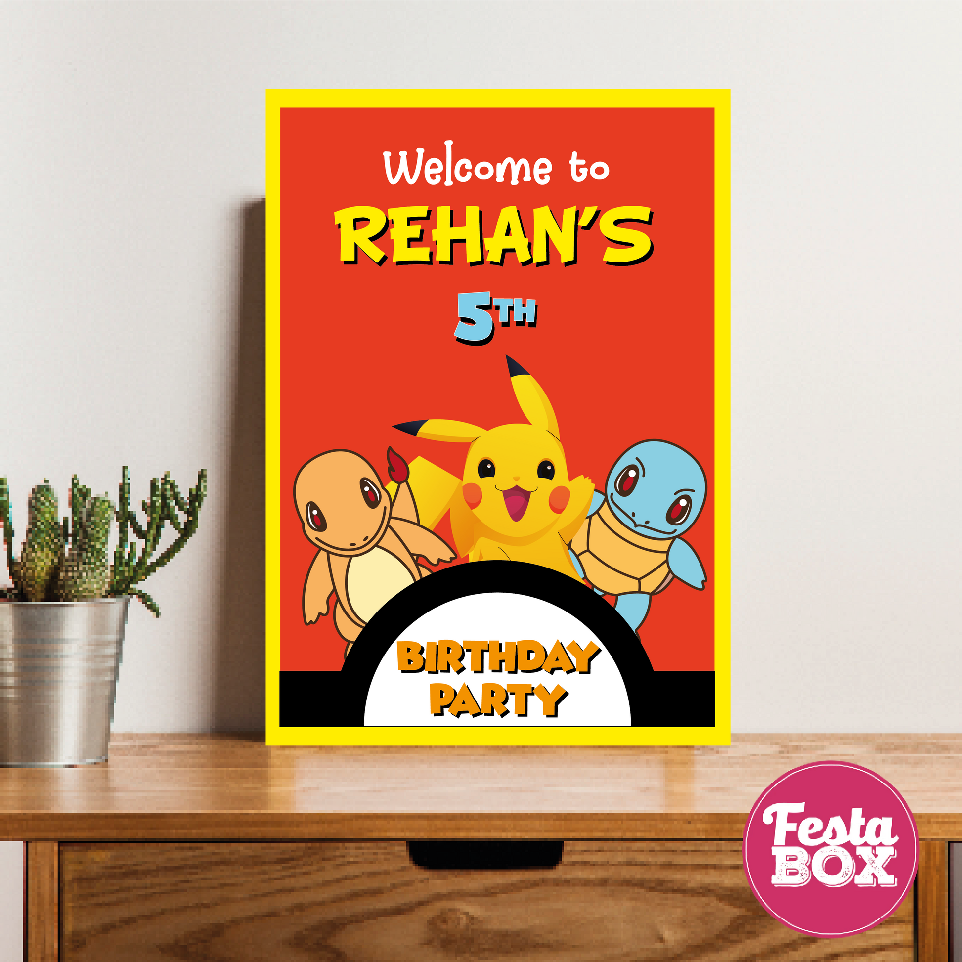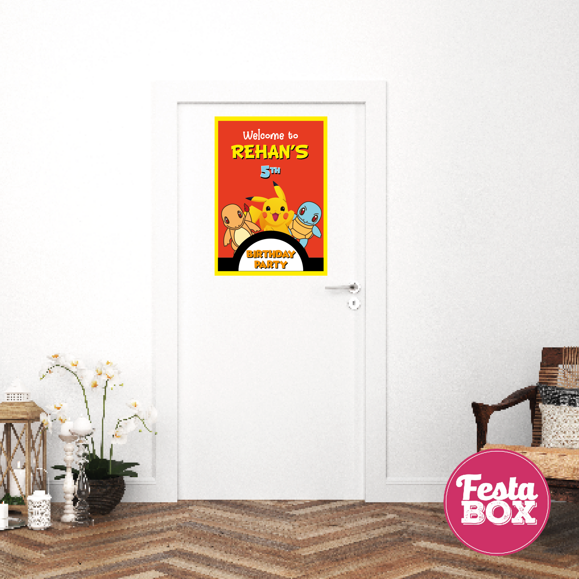 This welcome sign is part of Pokemon theme Birthday Party Theme Collection by Festabox. The Welcome sign is a poster. It can be put up on a door or on a wall.